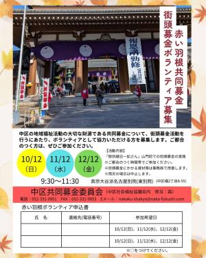【10/12(日)、11/12(水)、12/12(金) 中区】東別院赤い羽根共同募金 街頭募金ボランティア募集