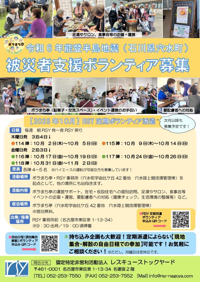 【毎週木曜〜日曜/毎週金曜〜日曜日 石川県穴水町】令和6年能登半島地震_現地活動ボランティア10月分