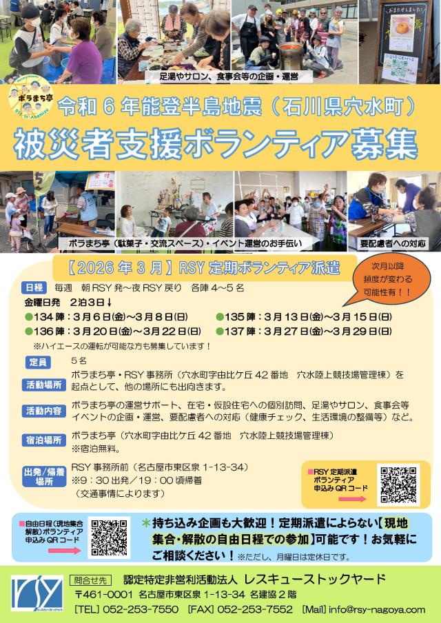 【毎週金曜日〜日曜日 石川県穴水町】令和6年能登半島地震_現地活動ボランティア3月分